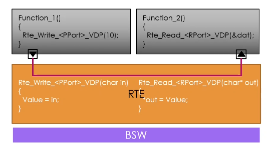 - 이 과정에서 RTE는 각 모듈간의 API를 구현하여 포인터와 데이터를 복사하여 전달한다.