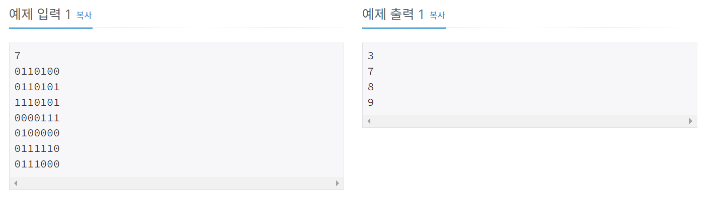 재귀 결과가 True라면 아파트 단지의 탐색을 마친 경우이므로 아파트 리스트에 cnt 값 넣기