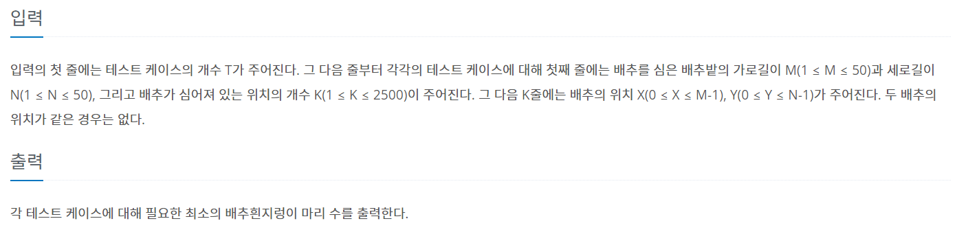 - 그래프의 값이 1인경우(배추가 있는 경우) bfs 탐색 진행