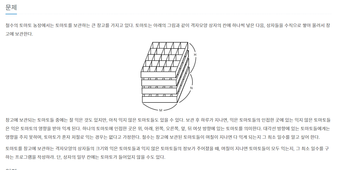 # 토마토 들어있는 칸 탐색해서 찾으면